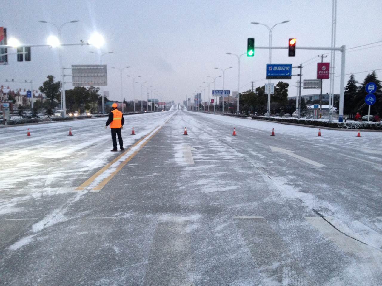 冰冻雪天,路翔人除雪忙 |